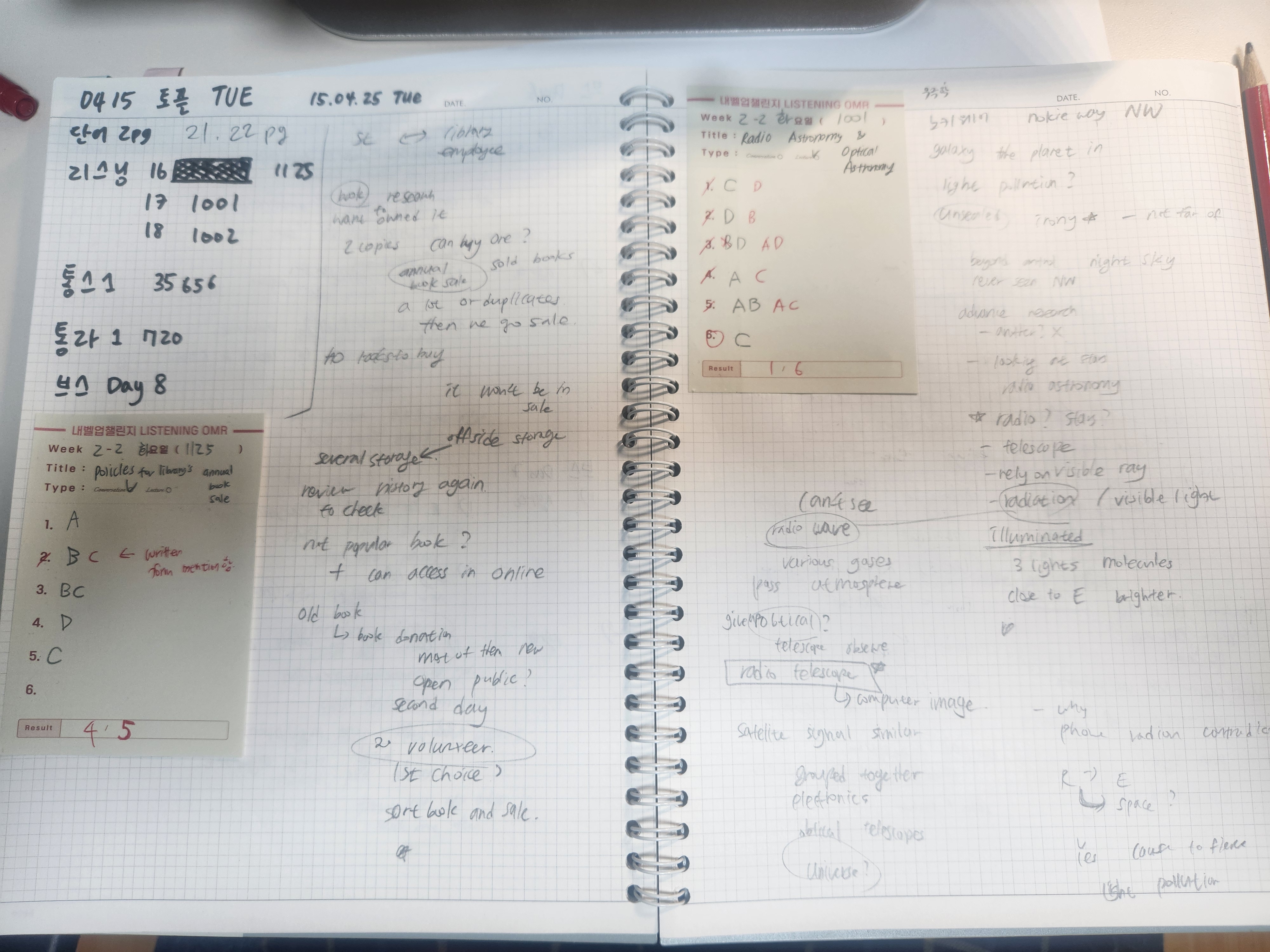 리스닝 왜저럴까 고민이 많이 되는 하루다. 통스는 어려울 것 같았는데 오히려 독립형 브스를 많이 공부해서 그런지 훨씬 쉬운 느낌이었었다. 할말이 많아서 중간에 안끊기려 노력했지만 끊겼다. 분발하자.