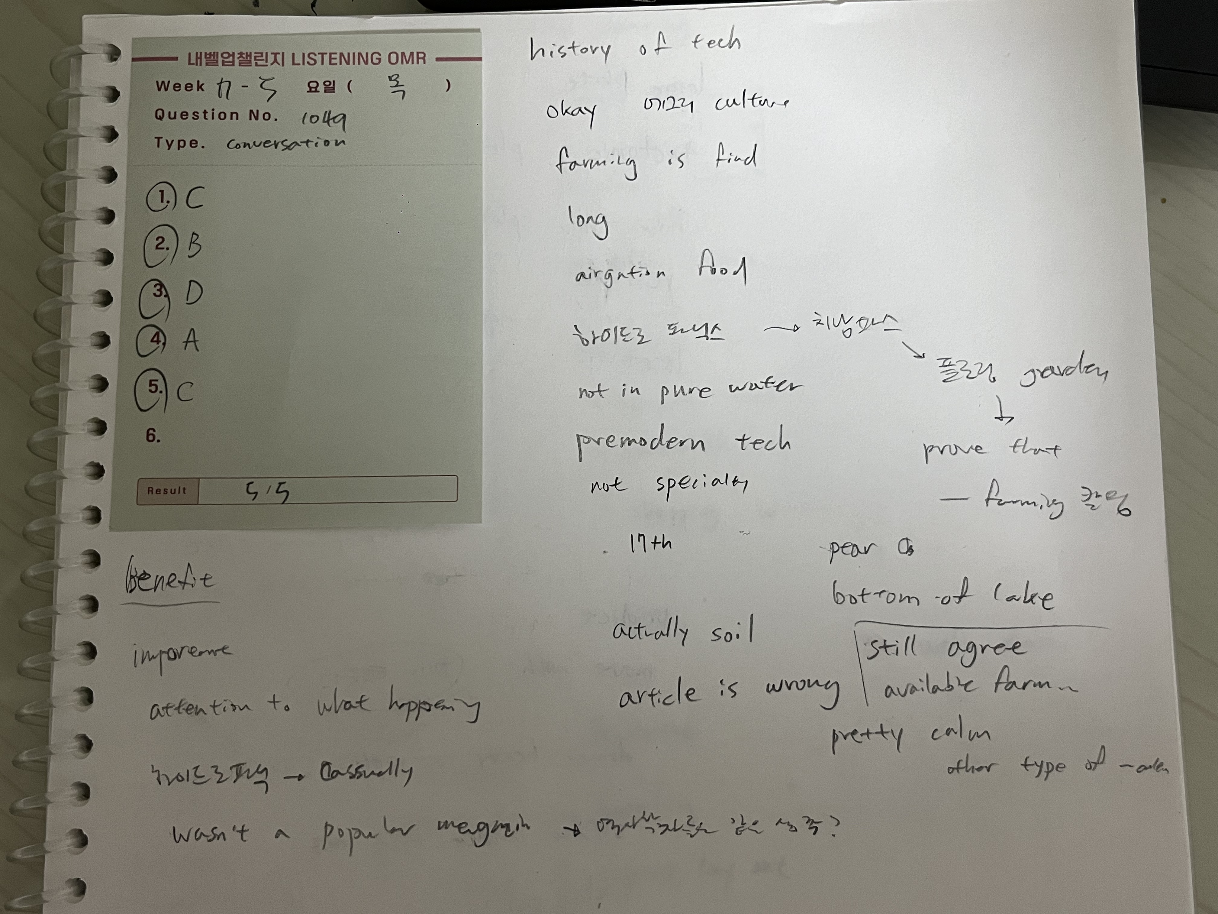 모두 완료, 리스닝 하나 모두 맞아서 행벅합니당