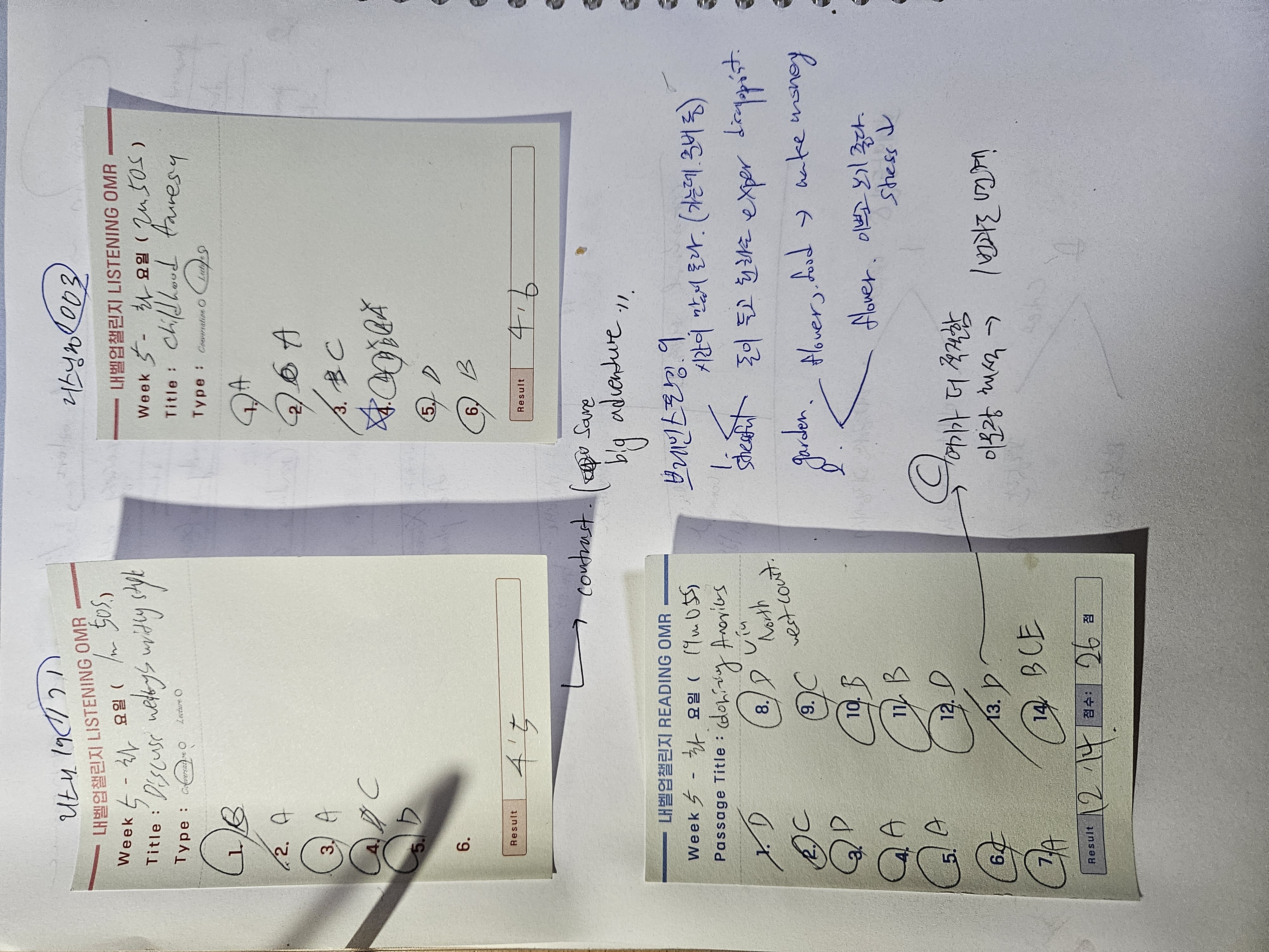 ✔️Week 5 - 화요일 모두완료 페이지 정보 작성자 차진 작성일 2025-09-30 21:48:19 조회 504회 댓글 0건 본문 리스닝 19,20 리딩 11 브레인스토밍 9, 단어 2 추천0