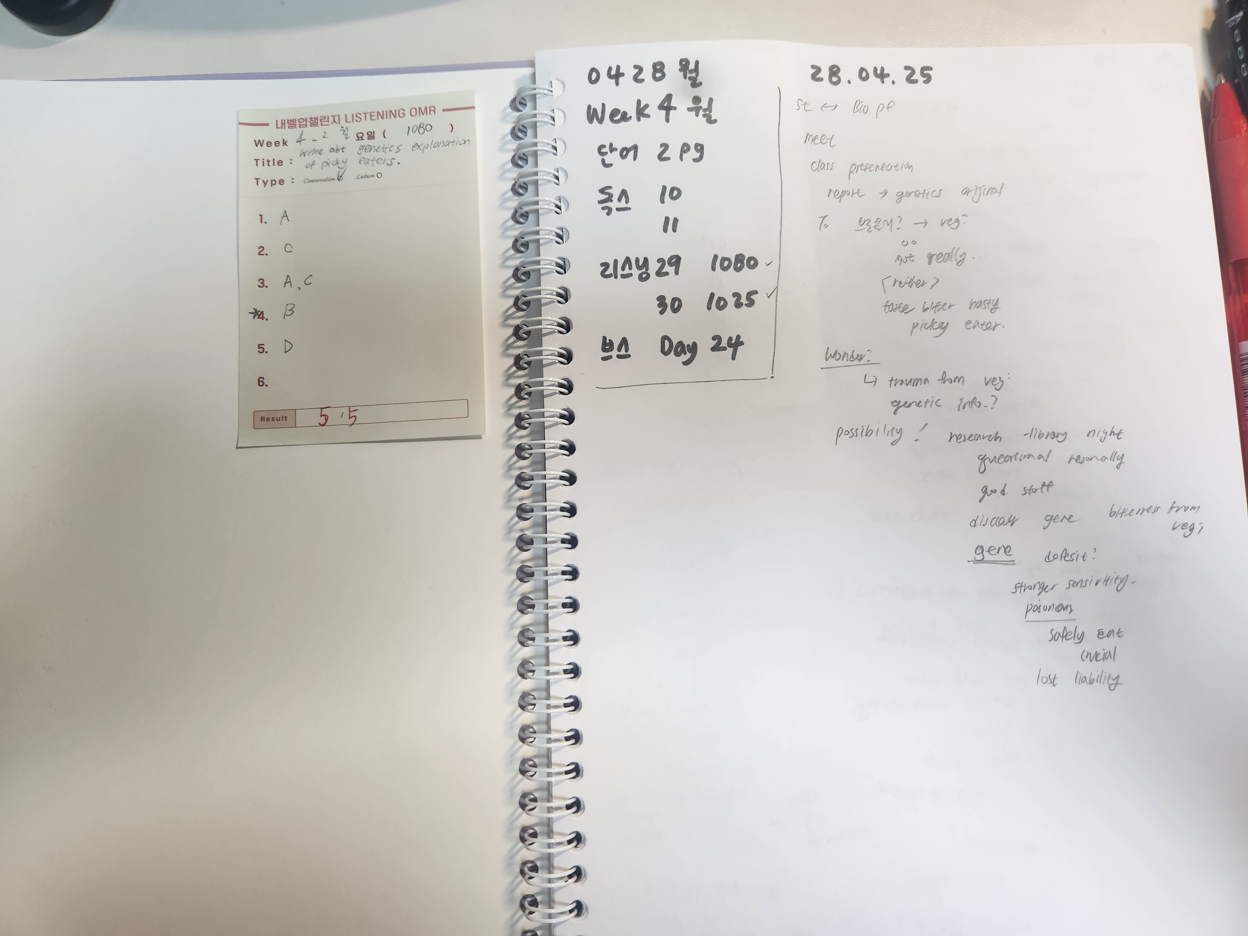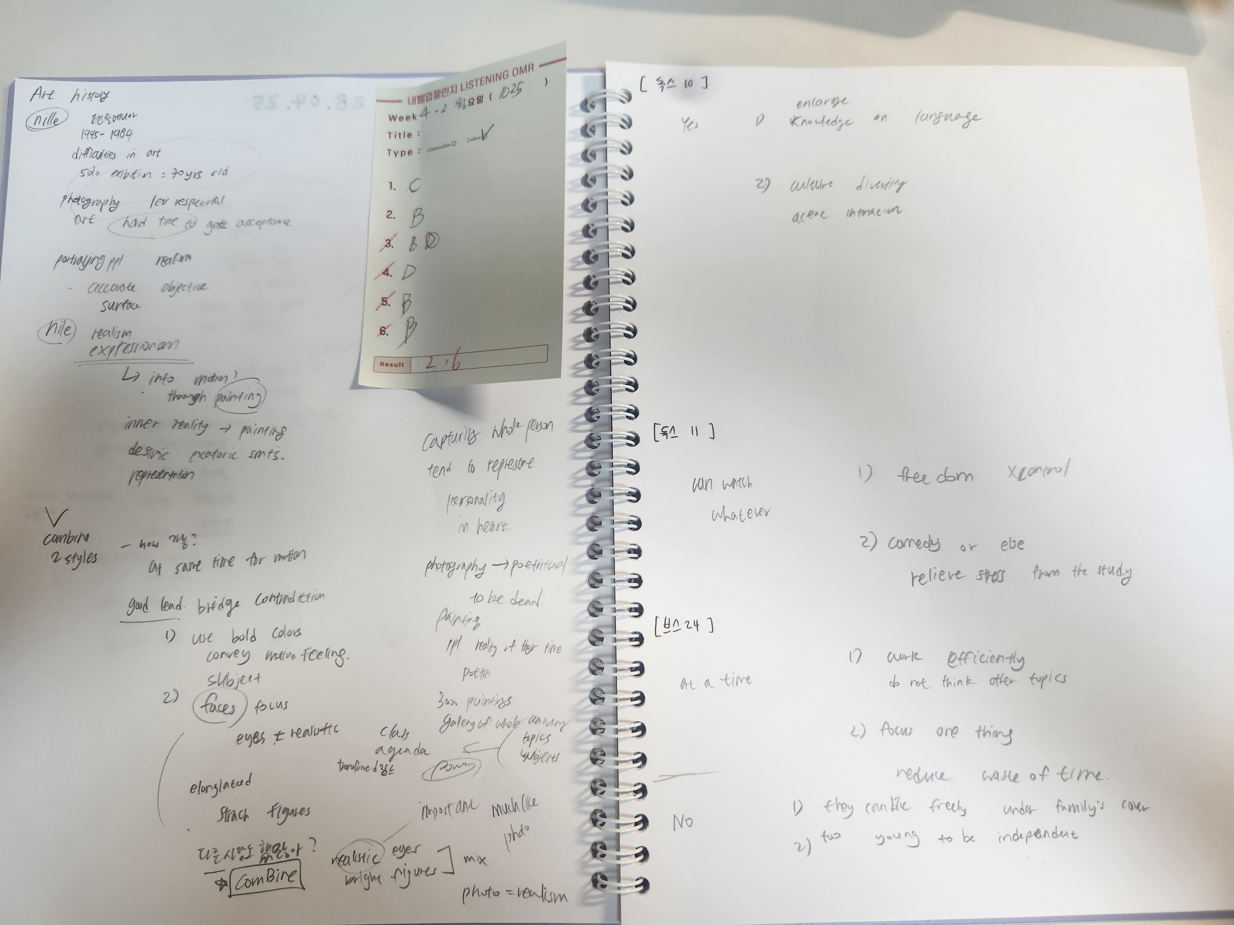 리스닝 렉쳐가 실수가 많았다. 발음이 특이하고 토픽이 중구난방이라 더 집중하기 어려웠다. 오답을 해보니 다 2번째로 가장 정답에 맞는 걸 골라서 더 화가 났다. 브스 2번째도 말하고자 하는 의견 2개가 비슷하게 나와서 실제 시험이었더라면 오프토픽이 될 것 같다. 답지 보면서 아이디어나 브스를 더 잘해야할 것 같다. 단어는 그럭저럭했고 독스도 괜찮았다.