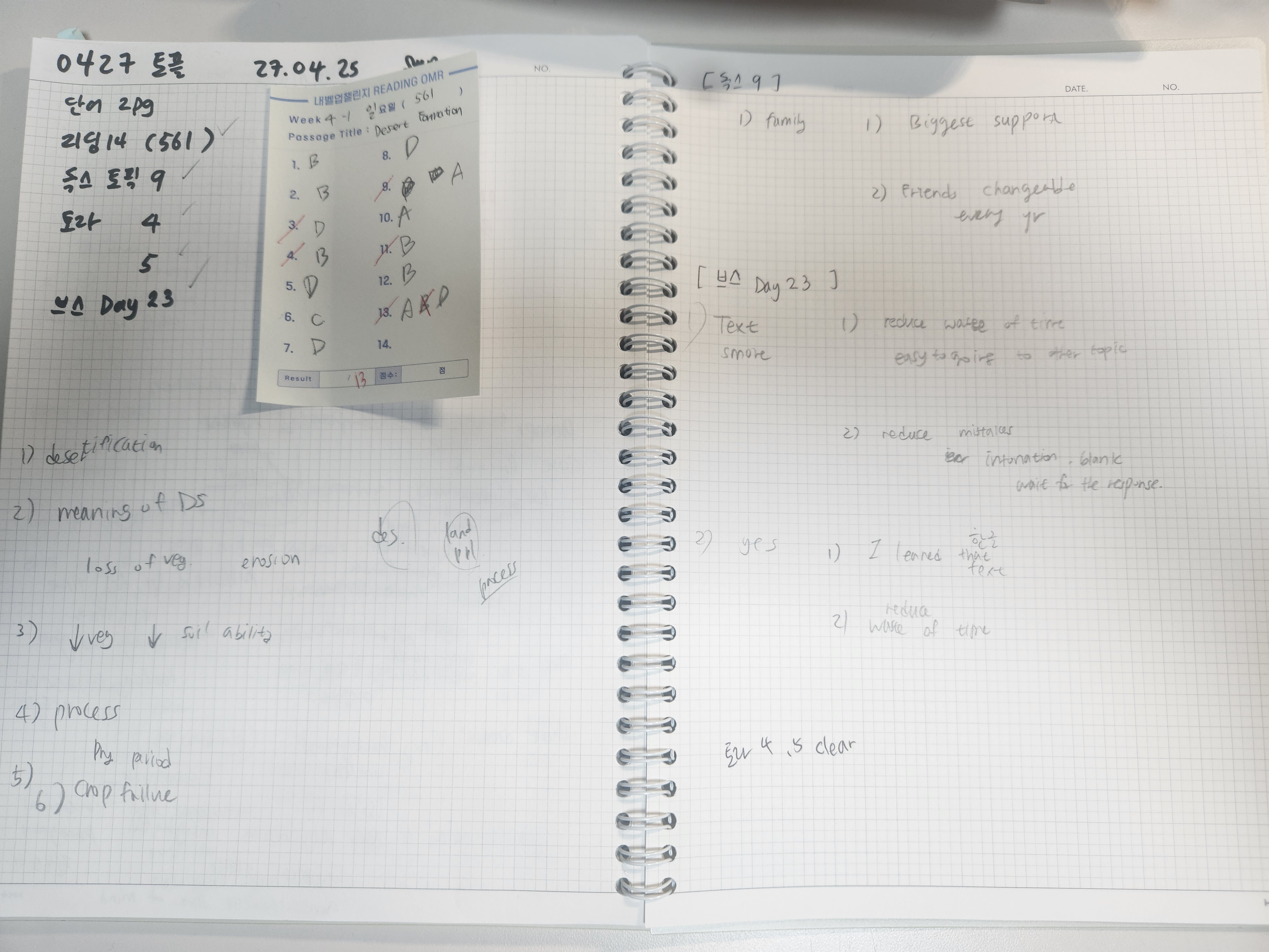 오늘도 수월하게 넘어가는 듯 보이지만 리딩 근거를 잘 잡지 못해서 아쉬웠다. 학교 중간고사랑 토플이랑 겹치다 보니 아주 멘붕이지만 시간을 쪼개 쪼개도 부족한 것 같다. 이제 시험 보는 날이 또 일주일 채 남지 않아서 이번에는 꼭 풀로 풀어보는 연습을 하고 가고 싶었는데 너무 아쉽다. 그래도 나중에 후회하지 않게 중간고사도 토플도 잘 볼 수 있도록 정말 노력할 것이다.