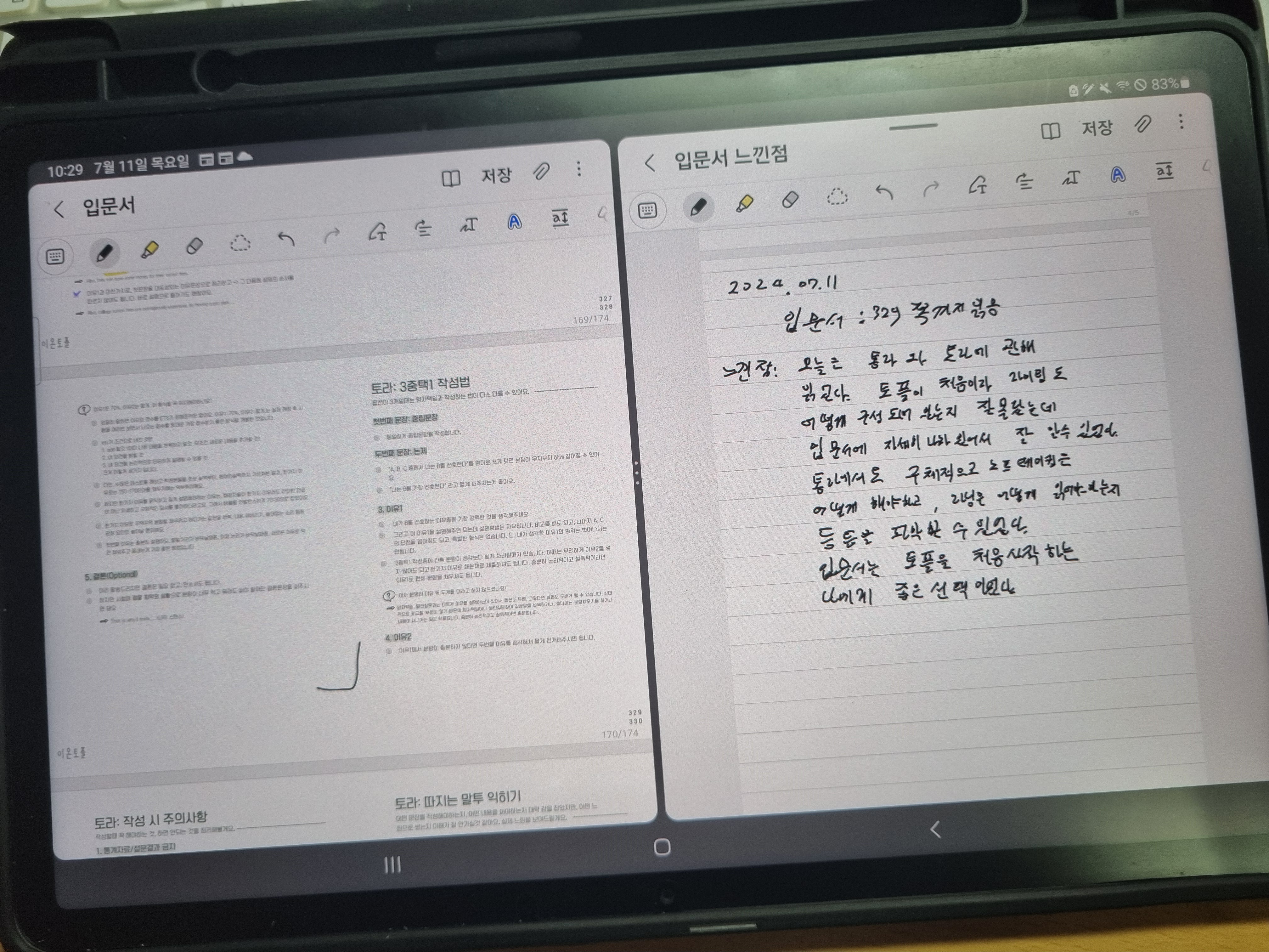 단어 9, 10 페이지와 입문서 5/6 완료했습니다.