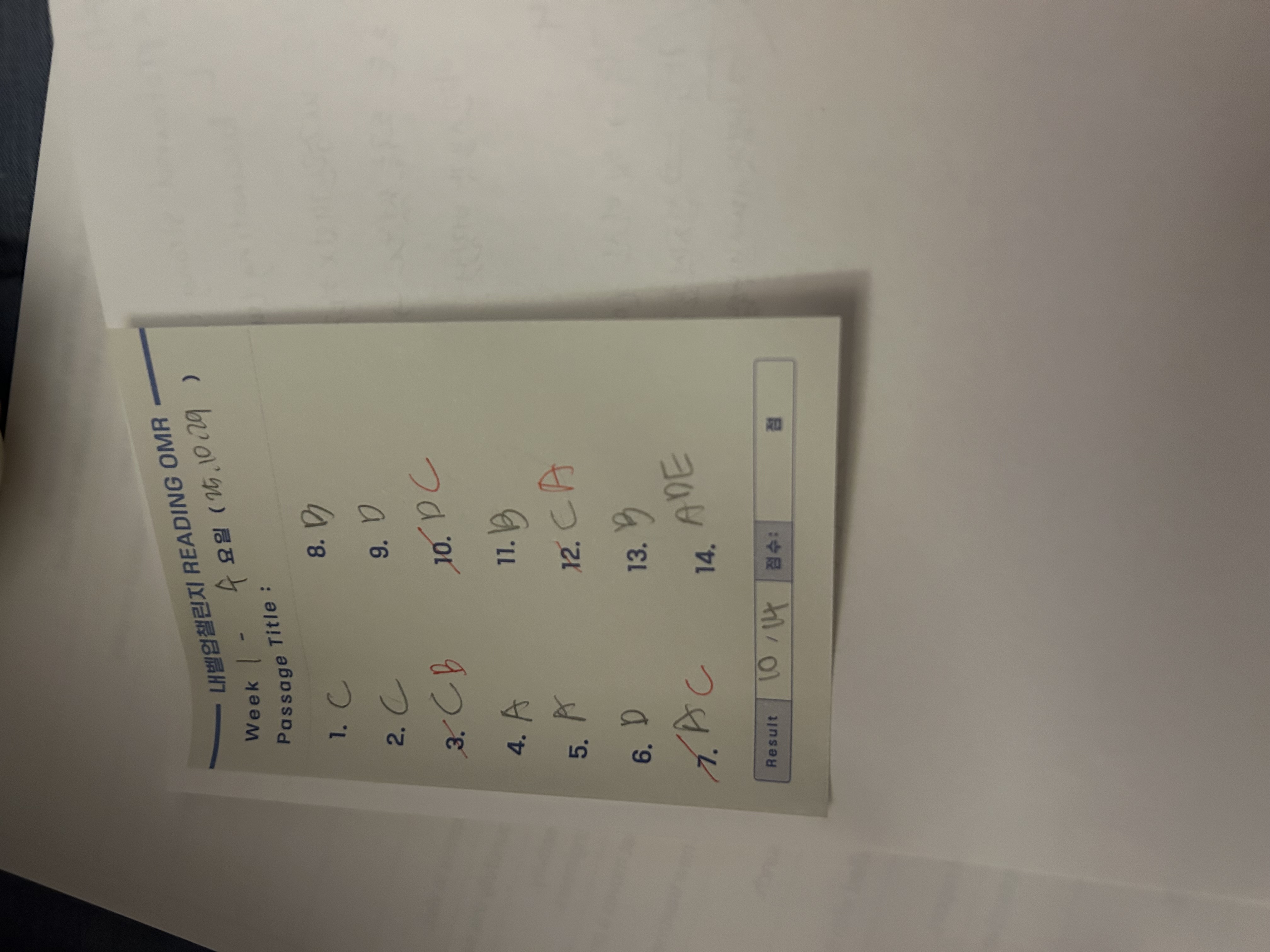 오늘 리스닝은 시간이 부족해 하지 못했습니다 ㅠㅠ 그리고 리딩 오답분석도 해야하는데.. 내일까지 전부 끝내놓겠습니다!